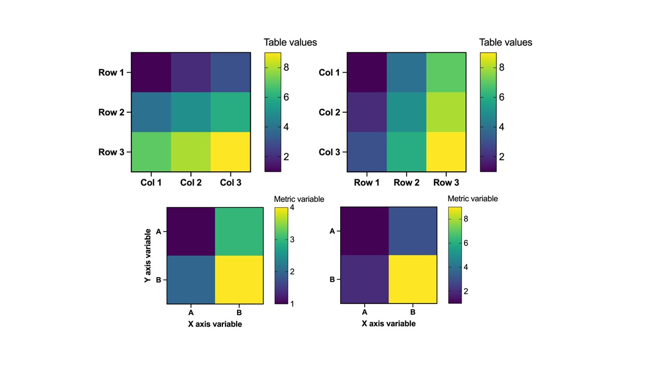 複雑なデータを明確な視覚的インサイトへと変換する、出版対応のヒートマップを作成できます。データマトリックスを直接視覚化することも、色の強度を定義する連続的な指標を用いてカテゴリ変数をグラフ軸に割り当てることもできます。階層的クラスタリングを用いてヒートマップとデンドログラムを組み合わせることで、データセット全体にわたる関係パターンと強度の傾向を明らかにすることができます。Automatic Number at Risk Table