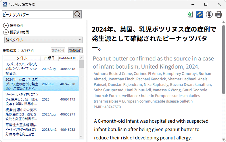 PubMedに掲載されている膨大な論文を、英語または日本語のキーワードで手軽に検索できるツールです。