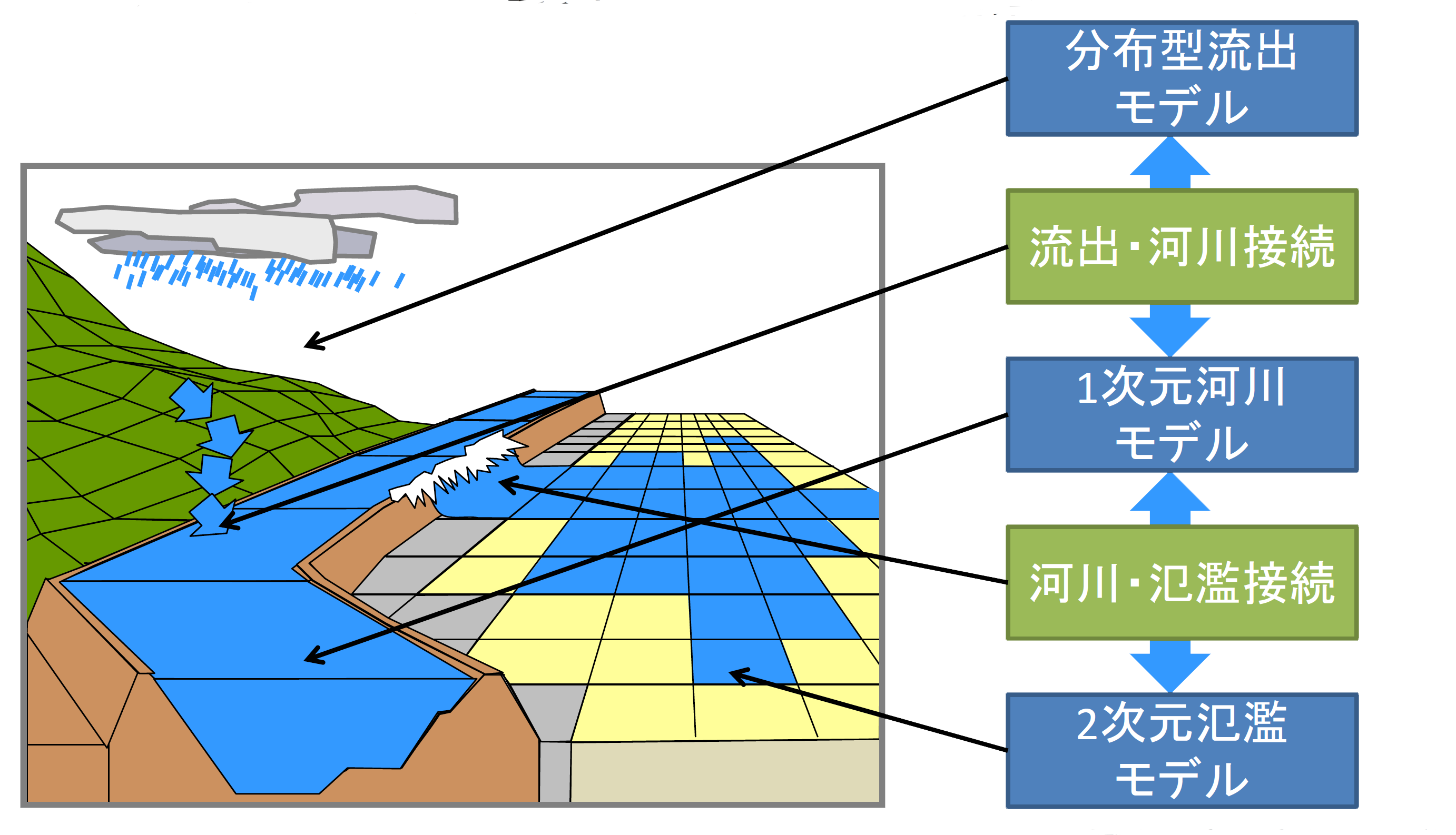 降雨から氾濫までの現象を一体的にシミュレーションすることができます。