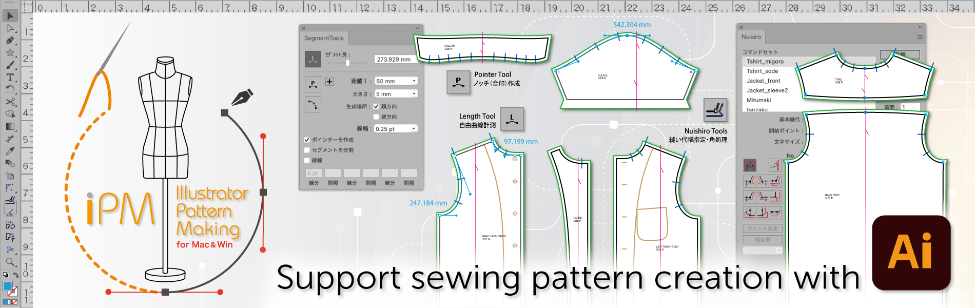 『Segment Tools』は、(株)ベビーユニバースのアパレルプラグイン『iPM(Illustrator Pattern Making)』シリーズの1製品です。
