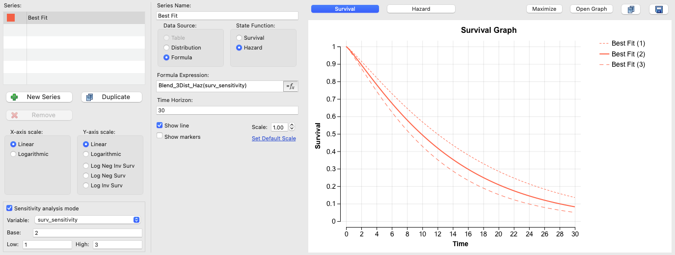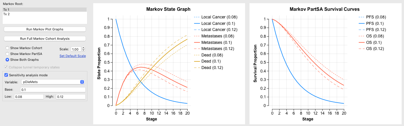 マルコフプロットおよび生存プロットの感度解析モード
