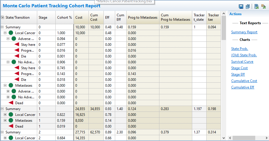 これにより、マルコフ・コホートモデルに似た追加のコホートレベルの報告や崩壊状態オプションへのアクセスが可能になります。