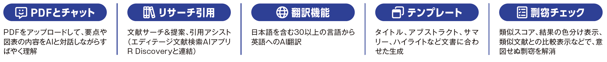 【対応言語(英語に翻訳可能)】日本語 / 中国語 / チェコ語 / ブルガリア語 / デンマーク語 / オランダ語 / エストニア語 / 英語 / フィンランド語 / フランス語 / ドイツ語 / ギリシャ語 / ハンガリー語 / インドネシア語 / イタリア語 / ラトビア語/ リトアニア語 / ポーランド語 / ポルトガル語 / ルーマニア語 / ロシア語 / スロバキア語 / スロベニア語/ スペイン語 / スウェーデン語 / トルコ語 / ウクライナ語 / 韓国語 【セキュリティ】●研究原稿データの再学習利用なし●研究内容の外部公開は行わない ●国際的な情報セキュリティ基準に準拠した運用 ●機密研究データにも配慮した設計