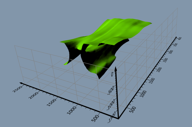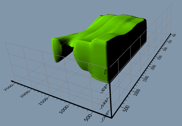 等値面は、3Dグリッドファイル内のNoData値を無視できるようになりました。 以前は、NoDataノードを特定のデータ値(データの最小値、最大値、またはカスタム値)として扱う必要があり、サーフェスの形状や体積の計算で予期しない結果が生じる可能性がありました。 今後は、NoData値を無視するだけで、等値面をありのままに表示できます。