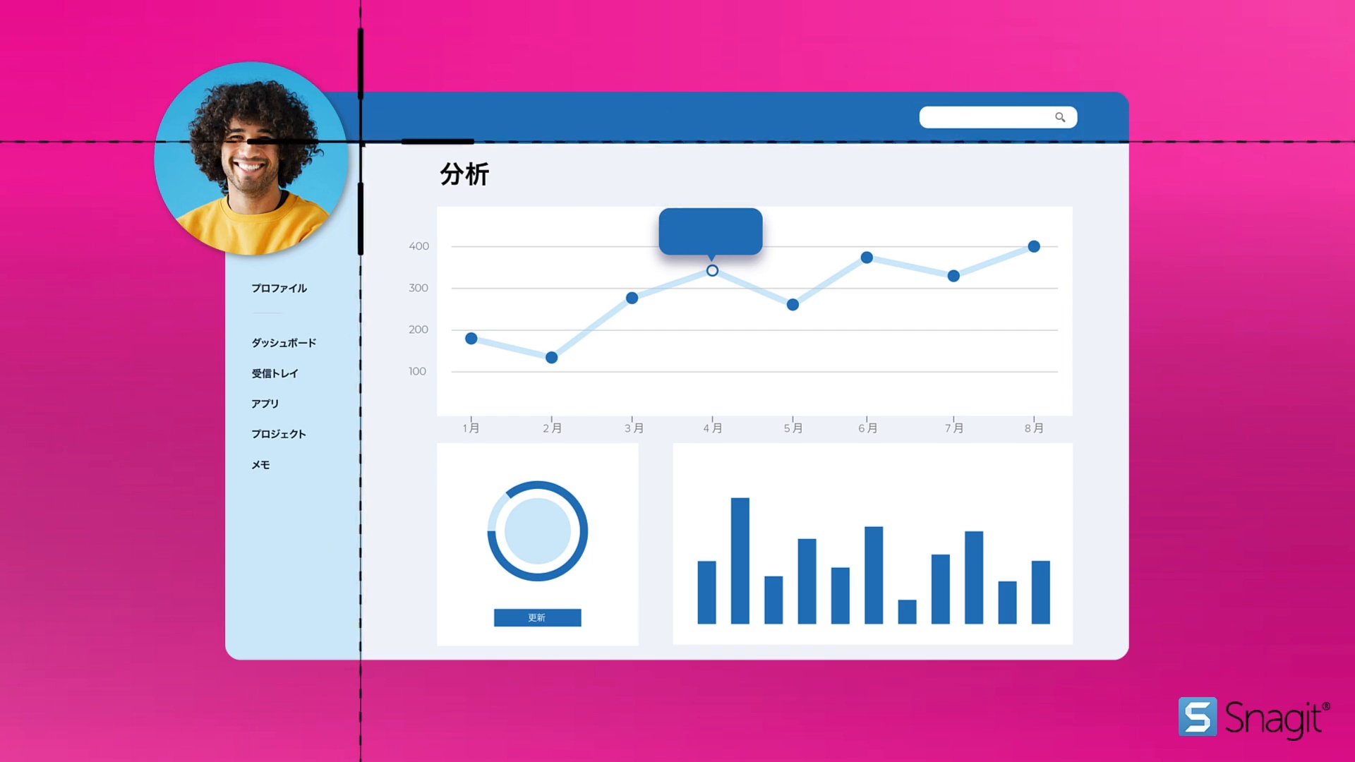 Snagit を使うことで、コンピュータの画面やWebカメラの映像をすばやくキャプチャし、説明を追加して、画像、GIFファイル、ビデオをお好みのプラットフォームで共有することができます。